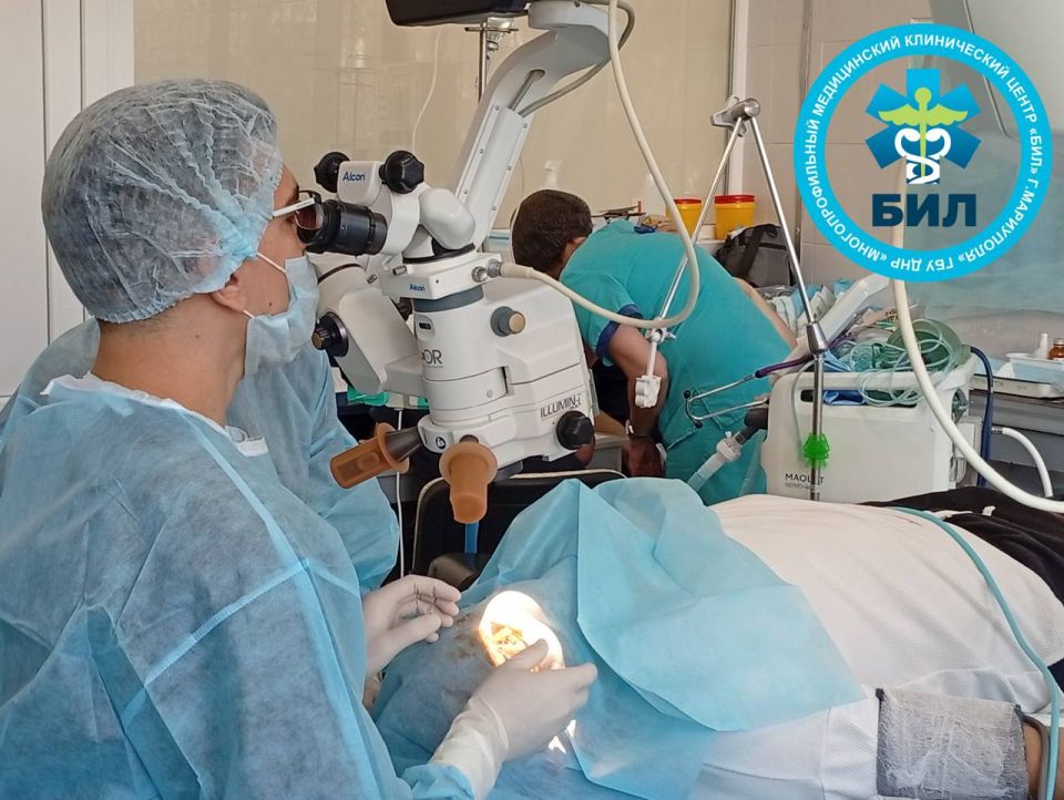 Операция выполнена с использованием современного офтальмологического микроскопа LXS Alcon и длилась 2,5 часа.