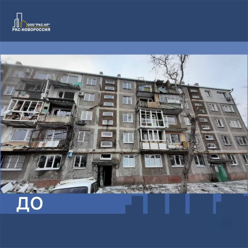 Специалисты провели ремонт здания, пострадавшего от боевых действий.