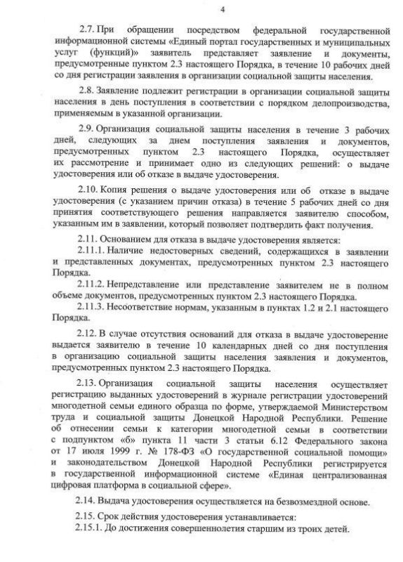 Указом Главы ДНР №716 от 11 сентября 2025 года утвержден Порядок выдачи удостоверения, подтверждающего статус многодетной семьи.