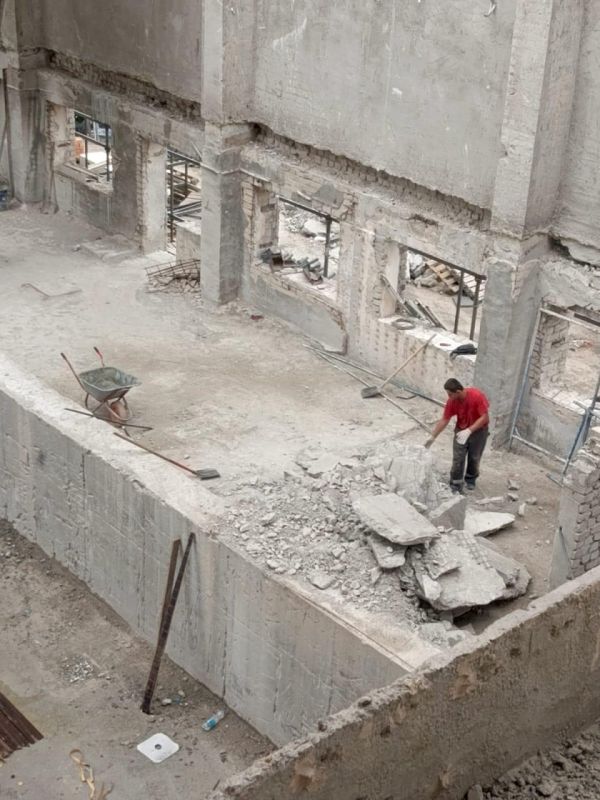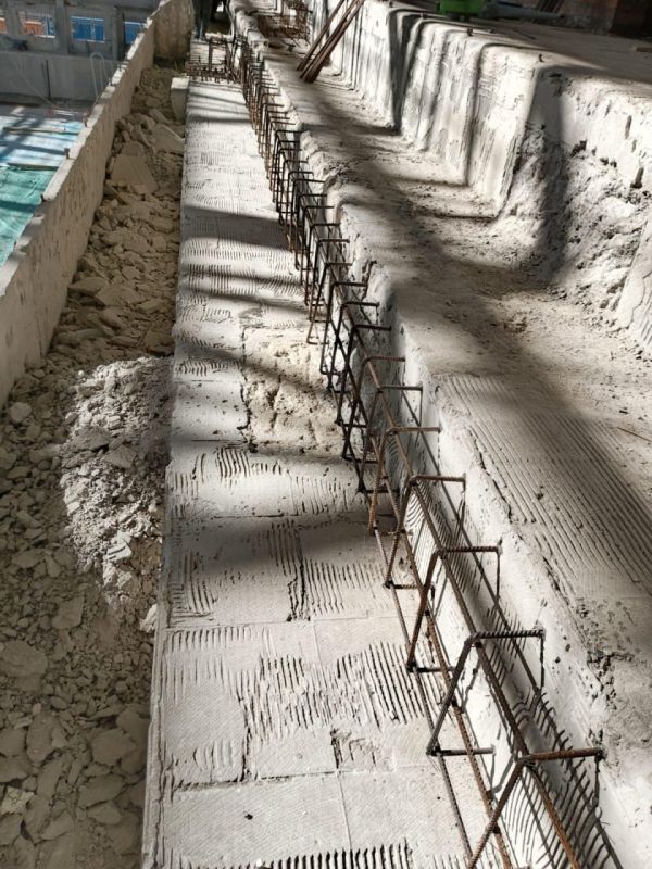 Сейчас строители Санкт-Петербурга занимаются армированием лестничных маршей трибун, демонтажем и вывозом строительного боя с чаши бассейна.
