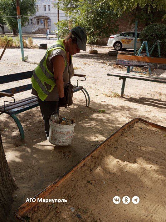 В трех районах Мариуполя коммунальщики провели уборку более 25 придомовых территорий
