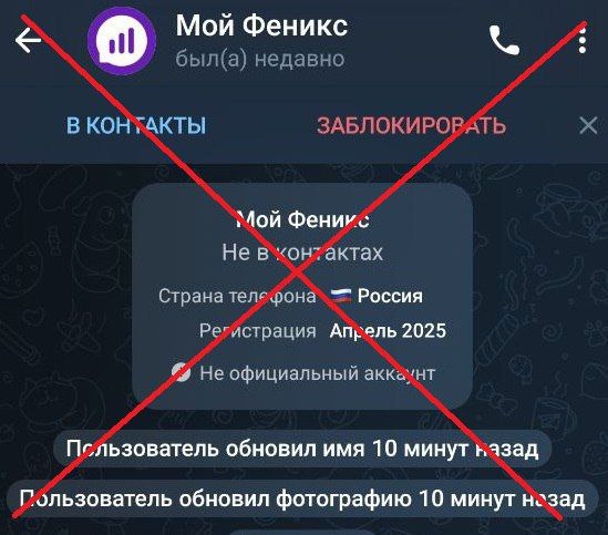 Кроме того, обращайте внимание на ссылки, по которым переходите. Наш бот "Мой Феникс" доступен только здесь - @myphoenix_botЛюбые другие комбинации букв и символов - подделка.