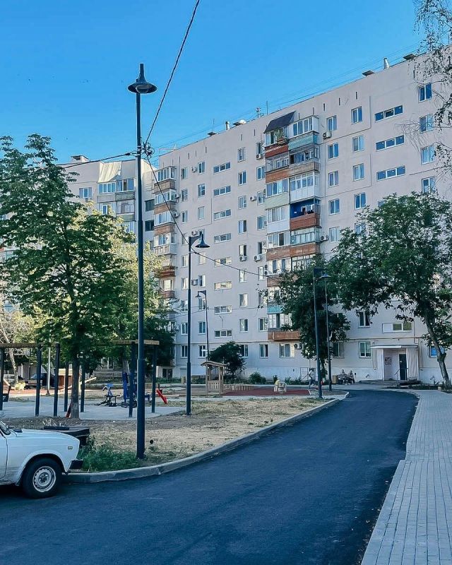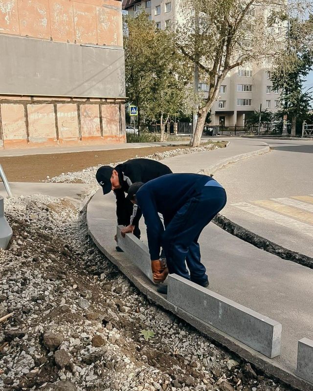 Здесь они выполняют покос травы, анкеровку лавочек и установку бортового камня, а также разбирают старую брусчатку у подъездов для создания правильного уклона от зданий.