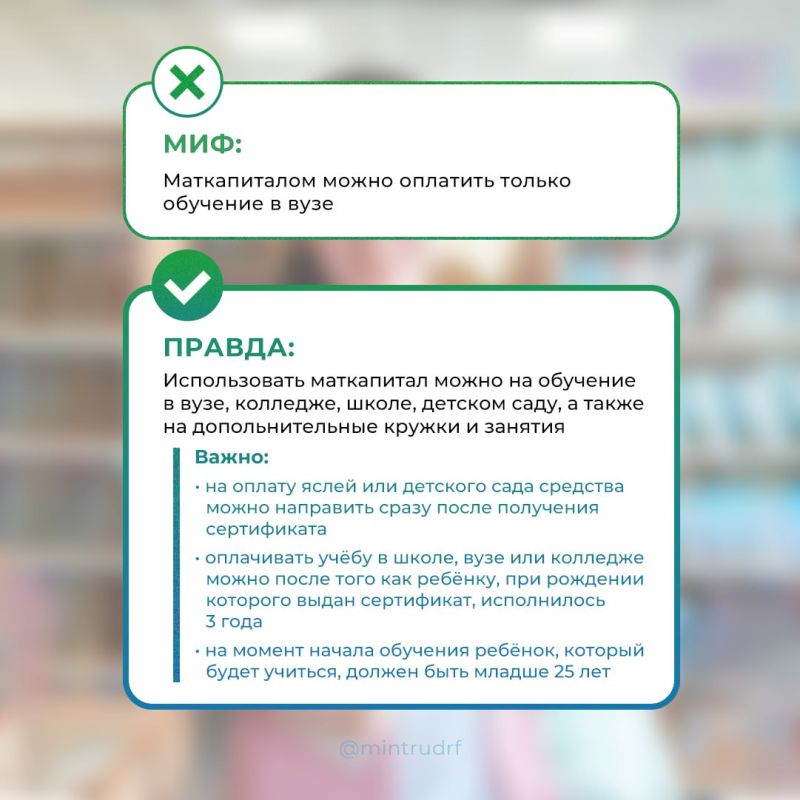 Сегодня развеиваем 5 мифов о направлении материнского капитала на оплату обучения детей.