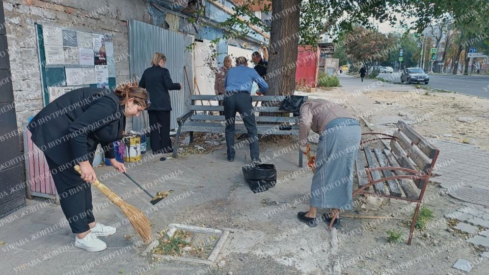 Сегодня сотрудники управы Жовтневого внутригородского района вышли на традиционный субботник, чтобы привести в порядок территорию возле здания управы.