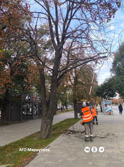 Мариупольские коммунальщики продолжают обрезку аварийно-опасных деревьев