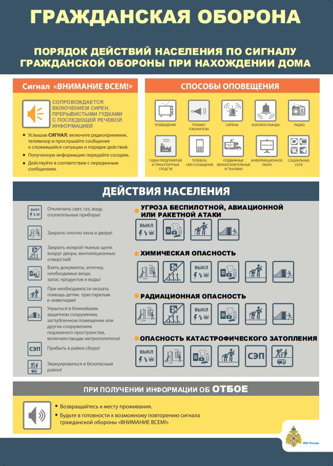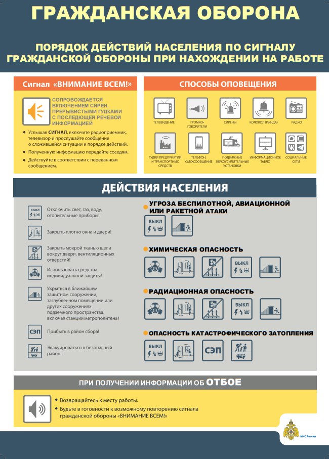 Уважаемые жители!. Напоминаем Вам порядок действия населения по сигналу гражданской обороны при нахождении на работе/ дома #Ильичевский_район_полезная_информация