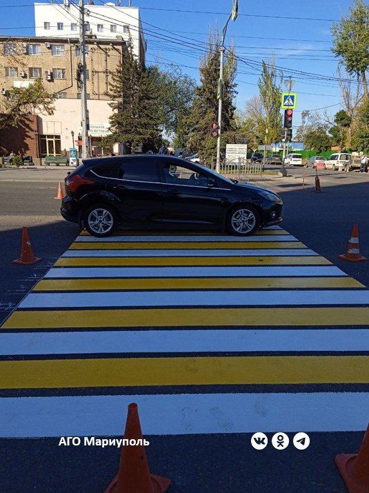 Чтобы горожане могли безопасно переходить дорогу, сотрудники МУП «Мариупольавтодор» нанесли новую разметку на пересечении проспекта Ленина с улицей Казанцева.
