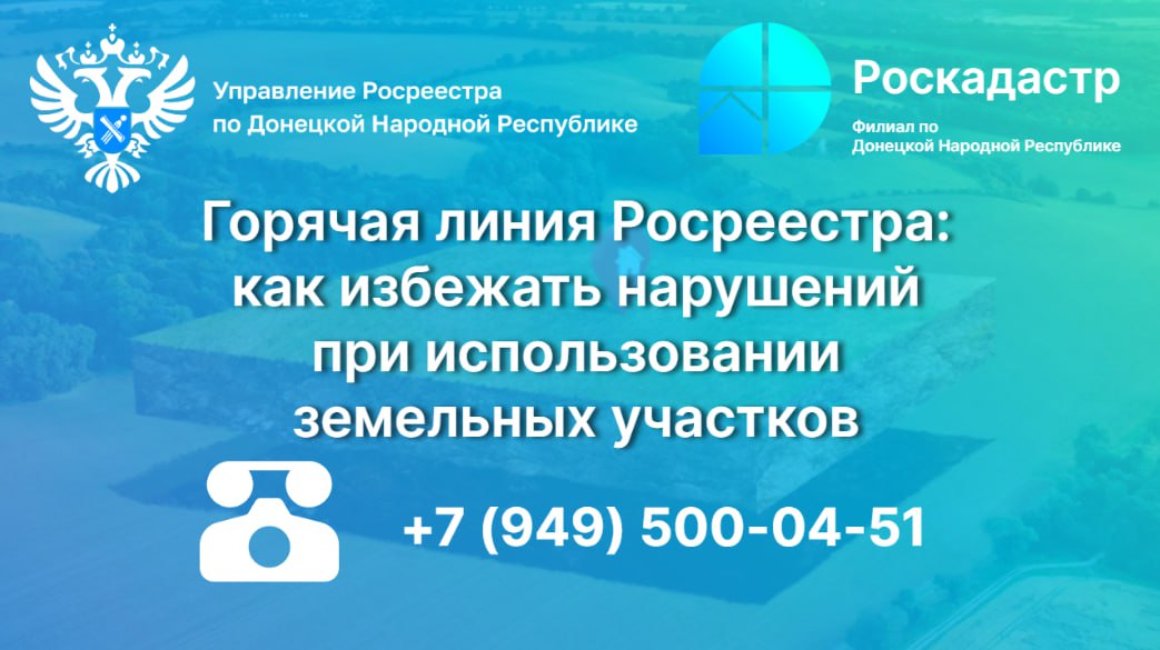 Напоминаем, что многоканальная горячая линия Управления Росреестра и филиала ППК «Роскадастр» по ДНР продолжает свою работу. Вы можете получить консультацию по любым вопросам, входящим в компетенцию наших ведомств.