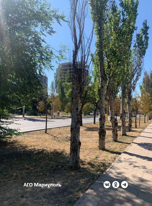 Мариупольские коммунальщики освобождают проспект Строителей от сухостойных деревьев