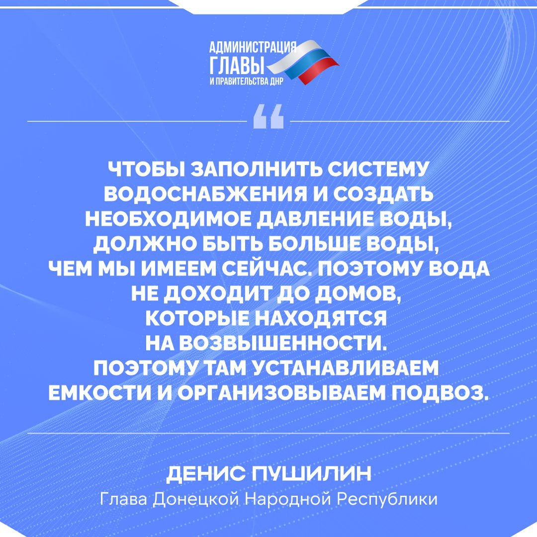 Денис Пушилин о решении проблемы с водой для жителей домов, куда вода не поступает из-за рельефа местности