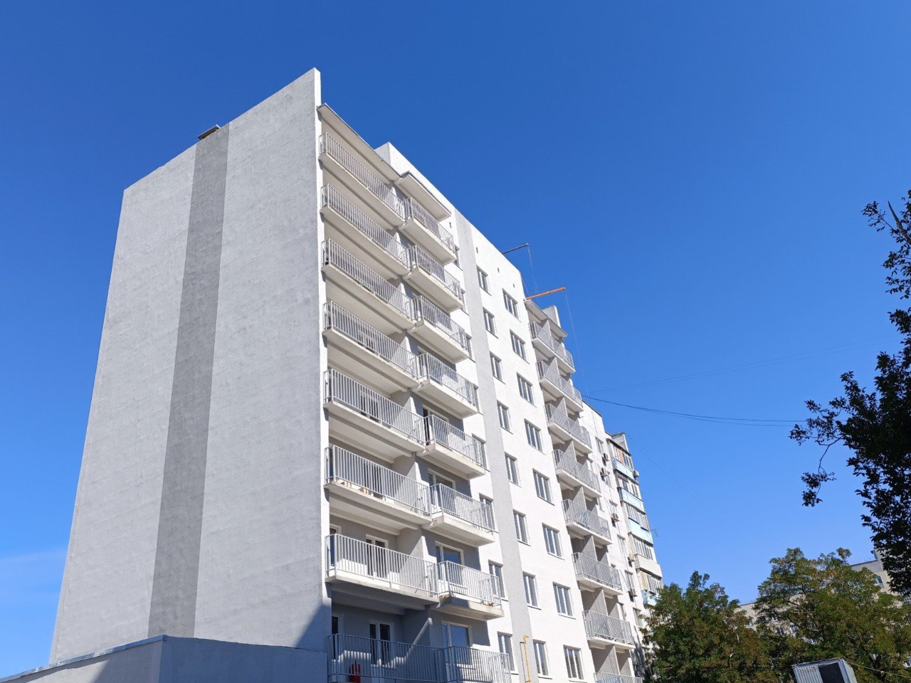 Девятиэтажный жилой дом, серьёзно повреждённый в 2022 году, проходит этап комплексного восстановления. В результате разрушений первый подъезд здания был полностью демонтирован.