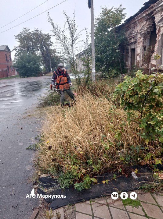 Коммунальщики благоустраивают зеленые зоны в старой части Мариуполя