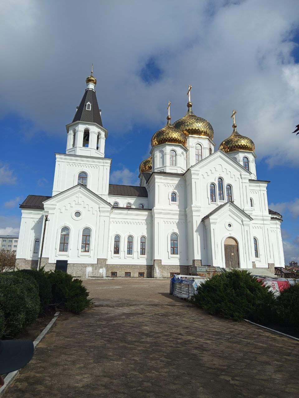 На территории левобережного Свято-Михайловского собора продолжаются работы по благоустройству. Скоро установят светильники для наружного освещения – уже завезены красивые кованые декоративные фонарные столбы.