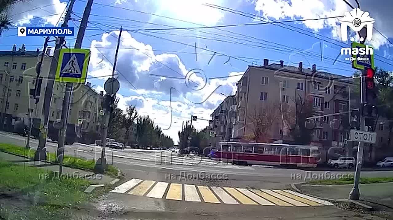 Грузовик въехал в трамвай с пассажирами в Мариуполе.