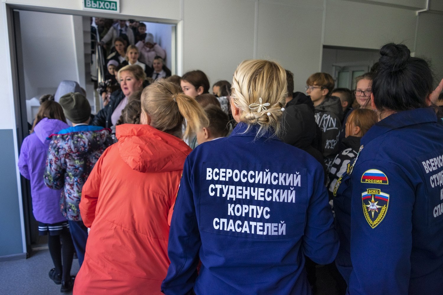 Завершилось мероприятие учебной эвакуацией. По легенде учений, один из классов был заблокирован, однако все учащиеся смогли организованно и в установленные сроки покинуть здание и прибыть в безопасную зону.