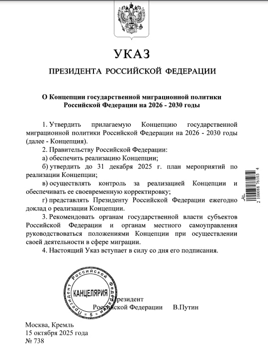 Путин утвердил Концепцию государственной миграционной политики России на следующие пять лет - с 2026 по 2030 год