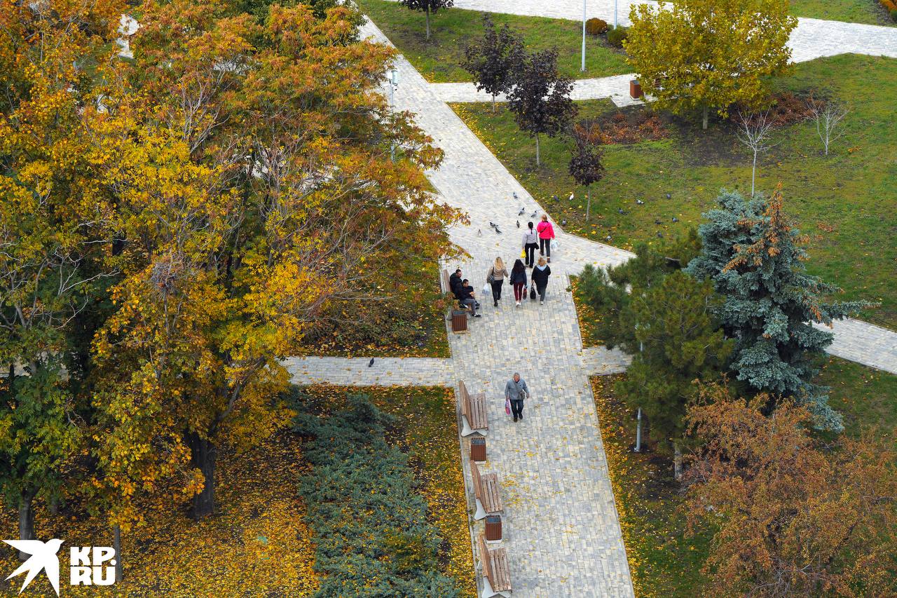 Возле Дома с часами, на площади, студенты ПГТУ коротают перерыв, перекусывая на свежем воздухе. У большого супермаркета полна парковка - машины покупателей сменяют друг друга. В сквере, уже тронутом осенним золотом, неспешно прогуливаются горожане. Над всем этим, возвышаясь, строители продолжают возведение второй очереди жилого комплекса «Дом с часами», заливая бетоном восьмой этаж многоквартирного дома. А над всем городом в этот момент плывет колокольный звон Собора Покрова Божьей Матери.
