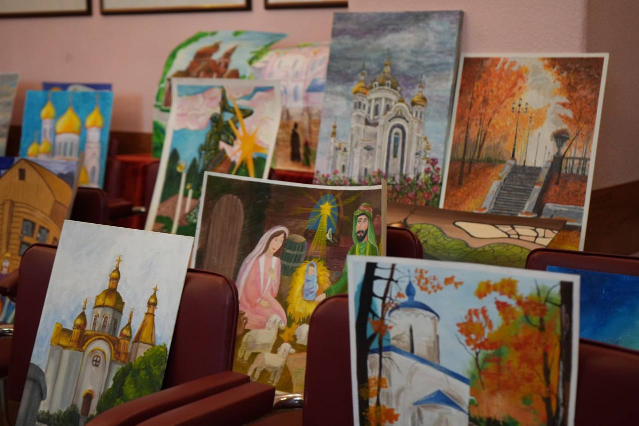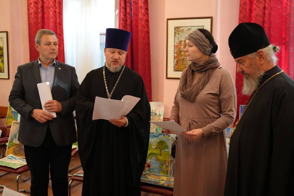 Вместе с епископом Макеевским Варнавой и председателем регионального отделения Союза художников России в ДНР Меликом Агабекяном, Желтяков оценил более 150 работ, созданных юными художниками региона.
