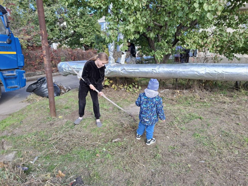 В уборке территории поучаствовали даже самые юные жители пос. Каменск.