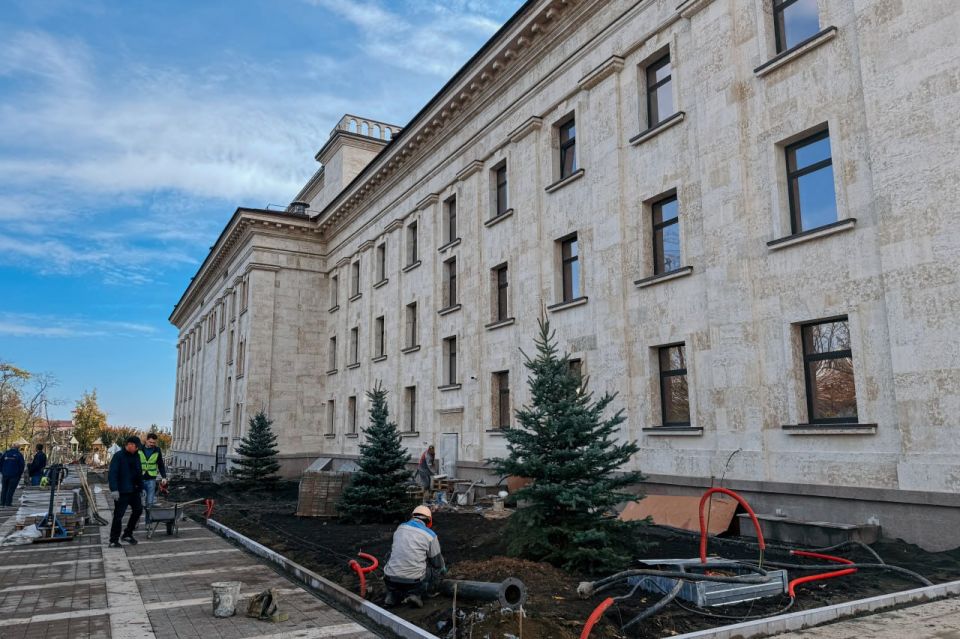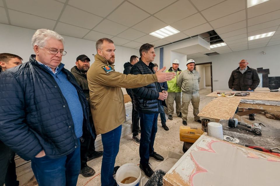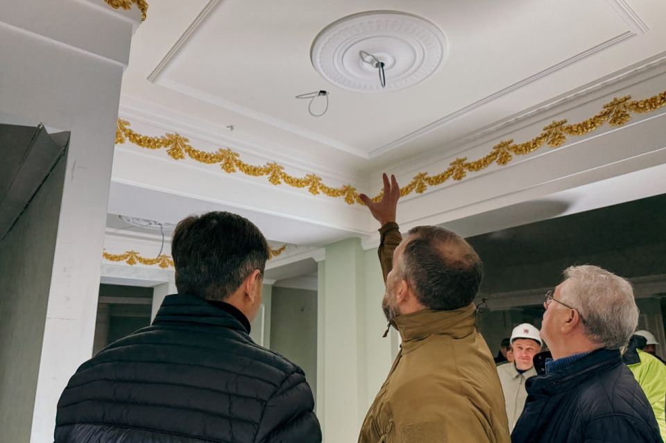 Главным объектом визита стал русский драматический театр — одно из ключевых культурных зданий города. Работы здесь ведутся в интенсивном режиме. На площадке задействовано более 300 специалистов. В ближайшие две недели планируется завершить прокладку пожарного водопровода, монтаж системы автоматического пожаротушения и приступить к пусконаладке вентиляции.
