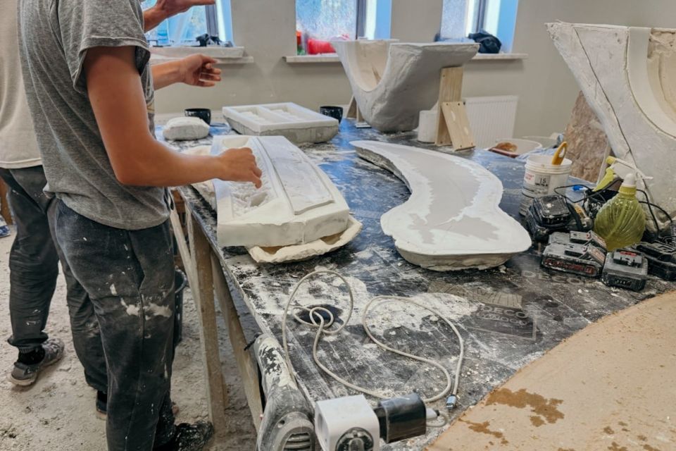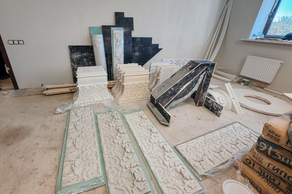 Делегация осмотрела все помещения театра, включая технические зоны. В зрительном зале подготовлено основание под наливной пол, после доработки будет уложен ковролин. Мастера представили элементы лепнины и декоративную роспись с позолотой — часть оригинального убранства здания.
