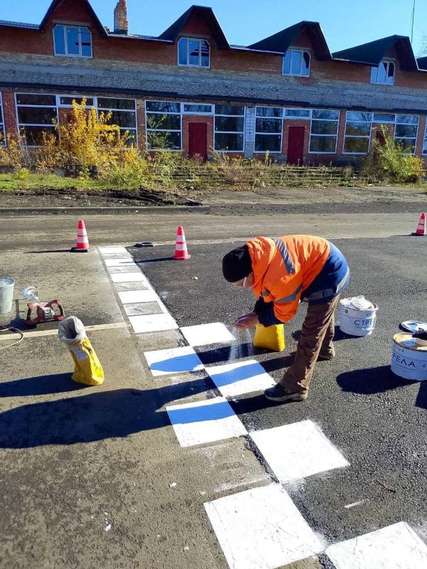 Нанесли горизонтальную дорожную разметку на участке автодороги Доля - Еленовка