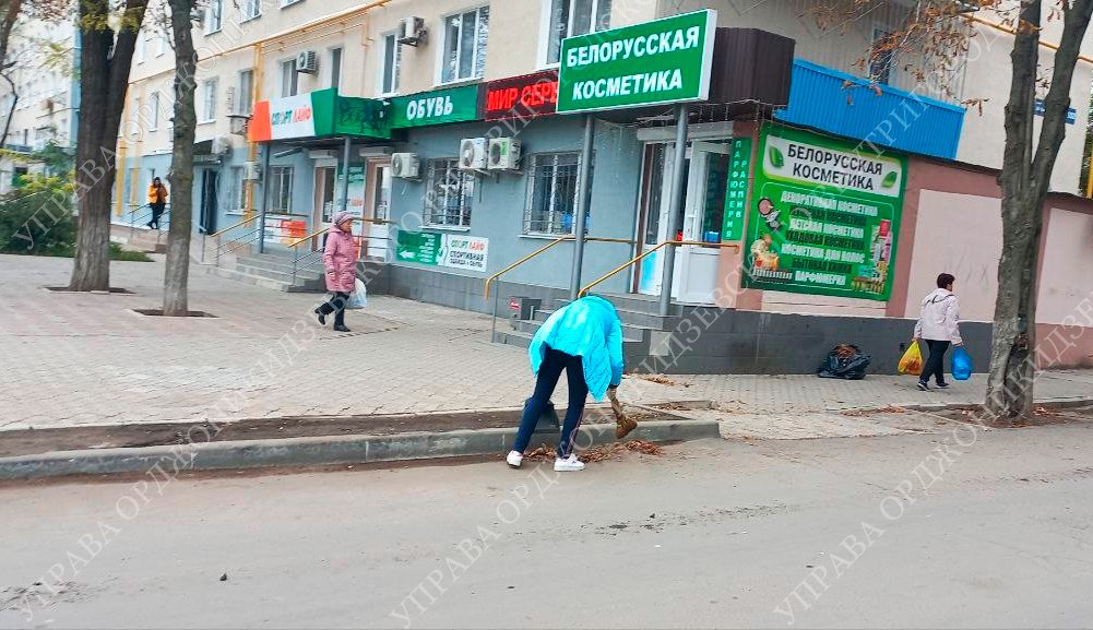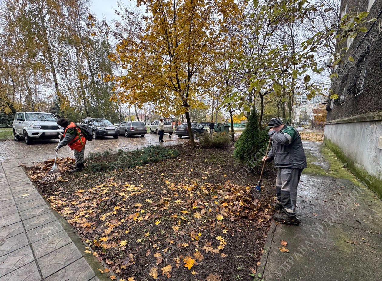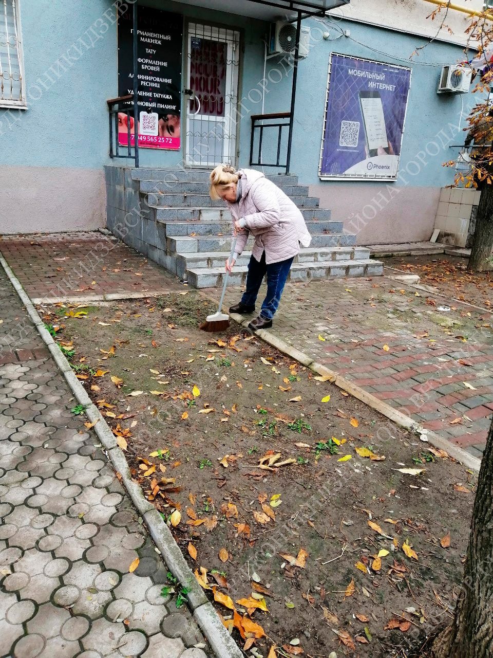 На территории по ул. 130-й Таганрогской дивизии, 108-112 совместно с работниками МУП «Зеленстрой» был проведён комплекс работ по уборке мусора, опавшей листвы и расчистке пешеходных дорожек.