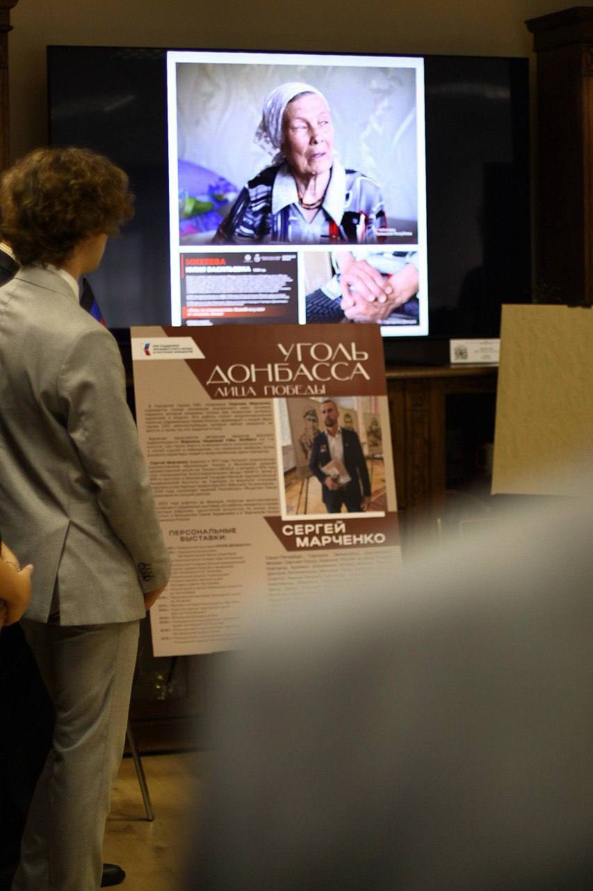 Специальным гостем Представительства ДНР в Москве стал художник Сергей Марченко, представивший серию графических портретов написанных углем участников СВО: добровольцев, военнослужащих, волонтёров, медиков – «Уголь Донбаса. Лица Донбасса».