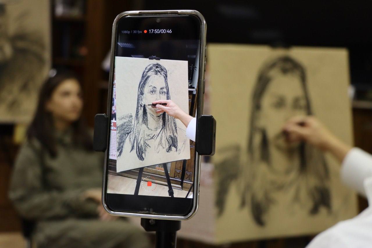В качестве подарка на глазах у всех гостей художник буквально за 30 минут набросал портрет молодой девушки – участницы СВО.