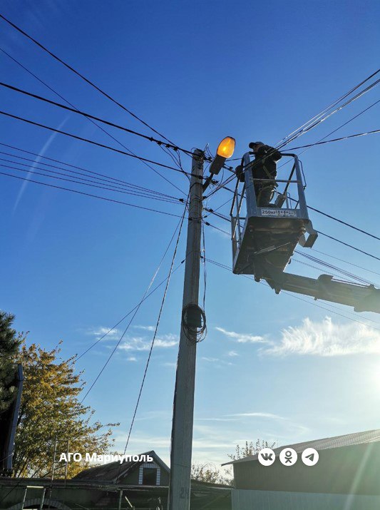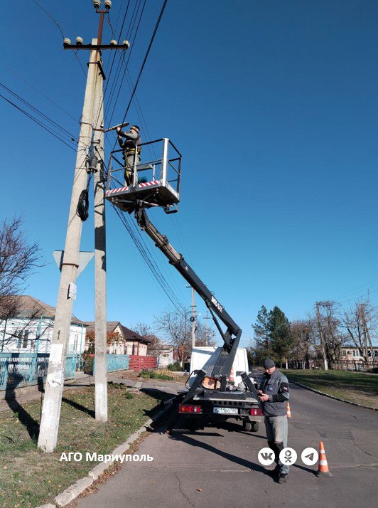 Также сотрудники МУП «Мариупольгорсвет» с привлечением 8 единиц спецтехники смонтировали и отремонтировали 1 940 метров кабеля, демонтировали 275 метров неремонтопригодного провода и 24 вышедших из строя фонаря.