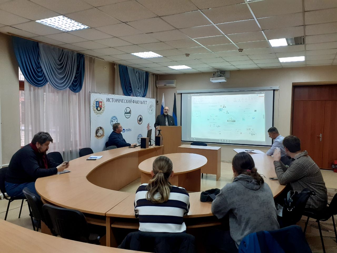 В работе круглого стола принял участие доцент Мелитопольского государственного университета Александр Жиряков. Он презентовал доклад на тему «Конструирование украинской фальсификации истории Великой Отечественной войны».