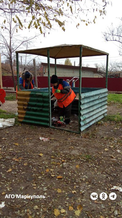 Работы по приведению в порядок дворов многоквартирных домов выполнили сотрудники Мариупольского филиала Единого регионального фонда по управлению МКД.