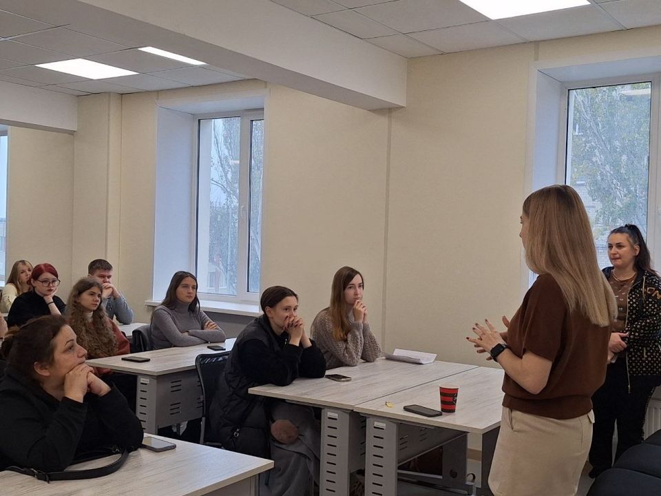 Со студентами социально-гуманитарного факультета встретилась Аксютина Вероника Алексеевна, начальник отдела по вопросам молодежной политики Администрации города Мариуполь.