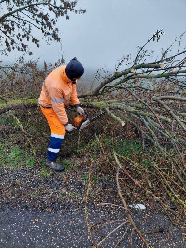 На автодороге /«Новороссия»/ - Демьяновка произвели валку и обрезку аварийных деревьев