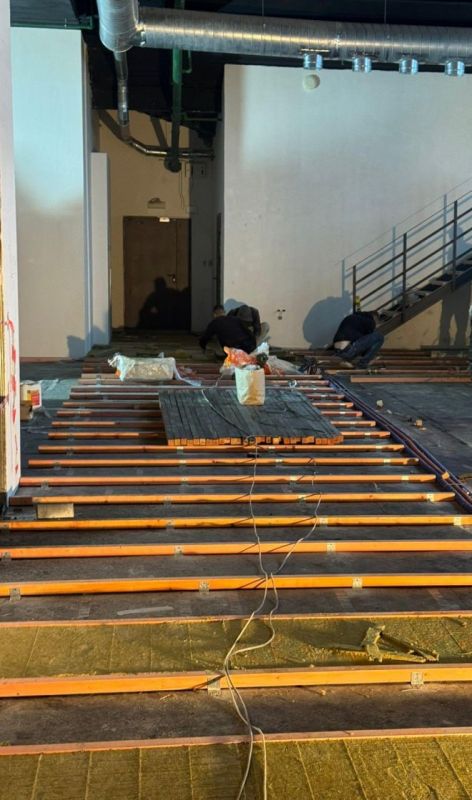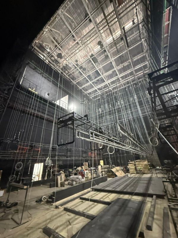 На объекте выполняются масштабные отделочные работы на всех этажах, монтируется вентиляция, лифты и сложное сценическое оборудование.