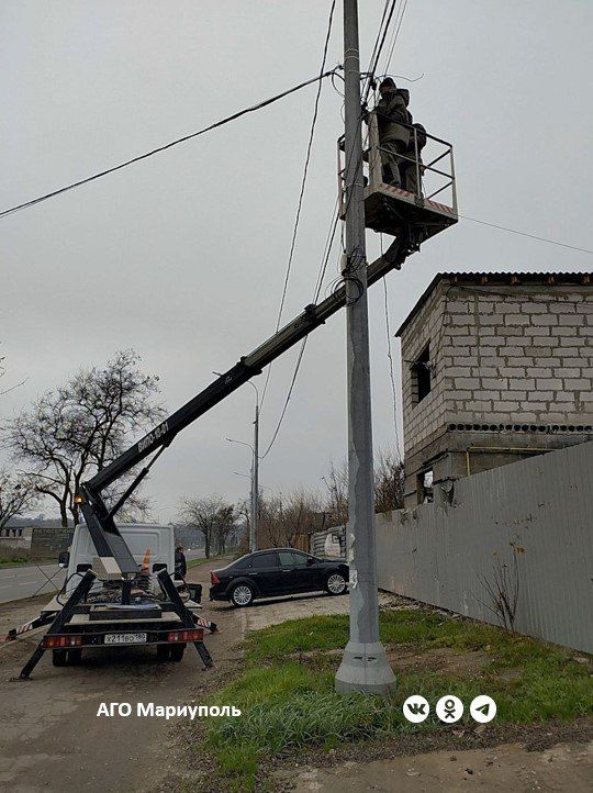 Также с привлечением 8 единиц спецтехники сотрудники МУП «Мариупольгорсвет» установили 41 светильник, демонтировали 36 вышедших из строя фонарей и на 2 120 метрах сетей устранили повреждения и короткие замыкания.