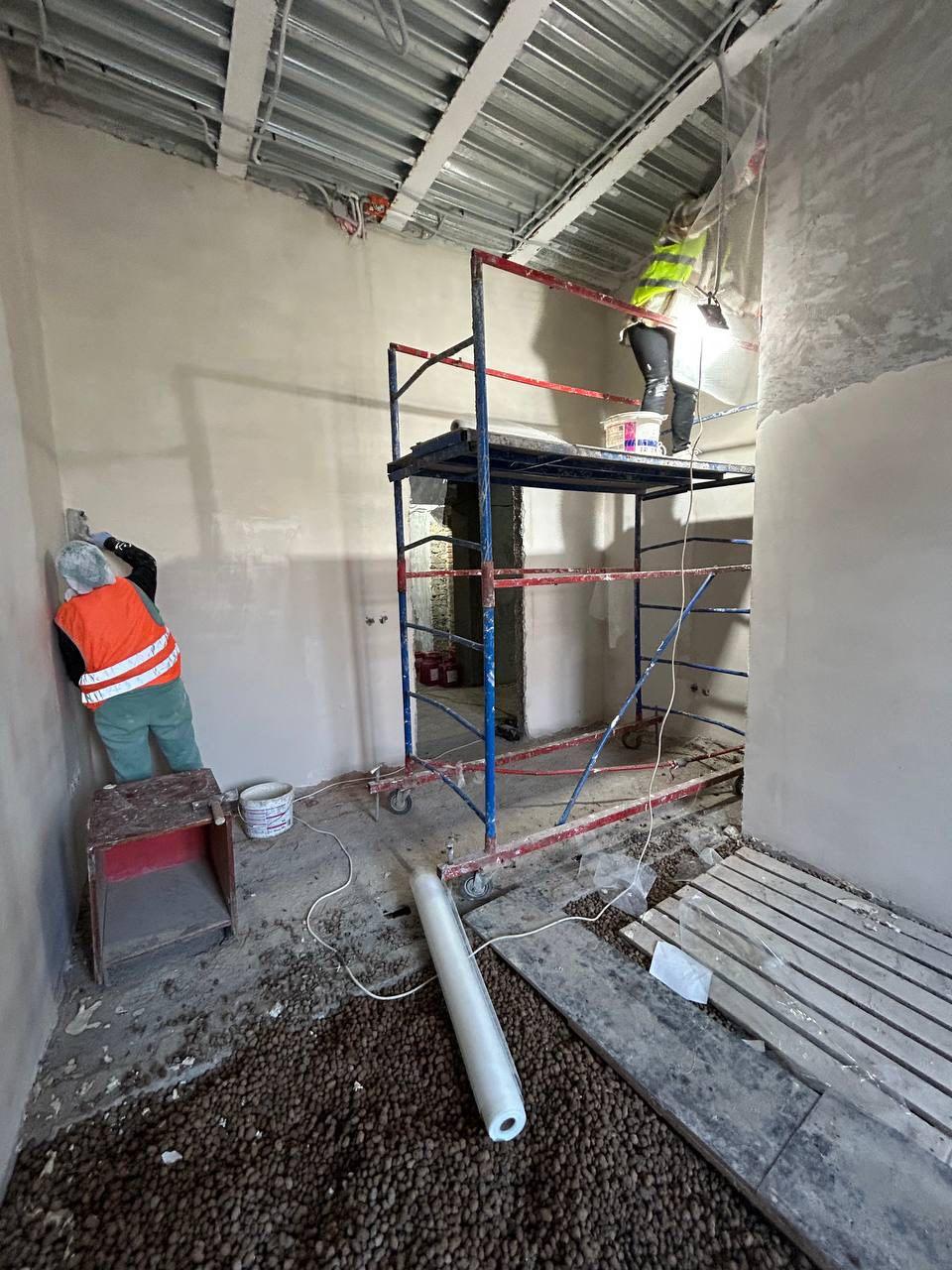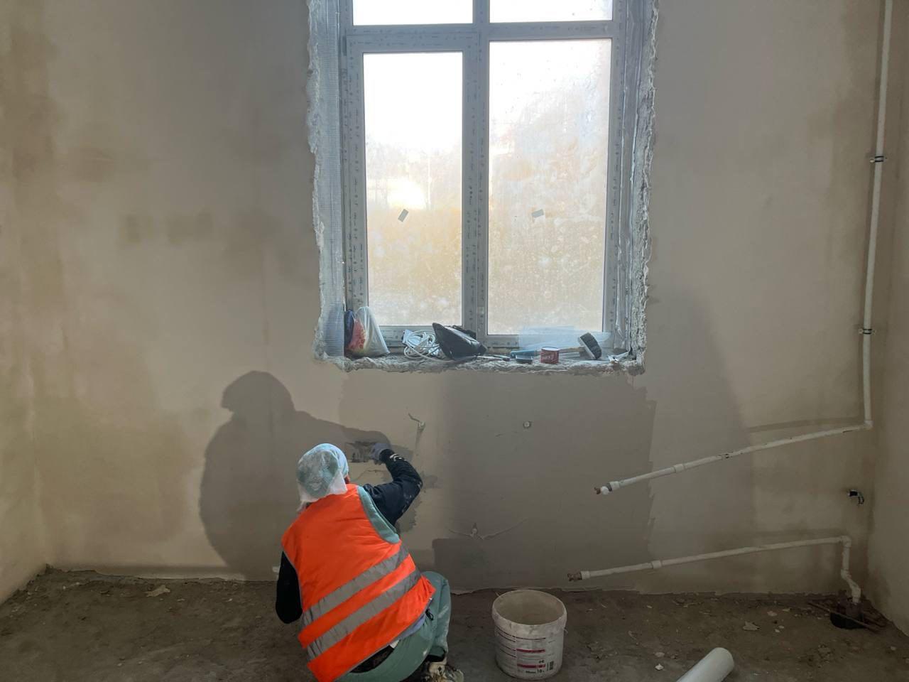 Также строители приступили к отделке мест общего пользования и восстановлению лестничных площадок.
