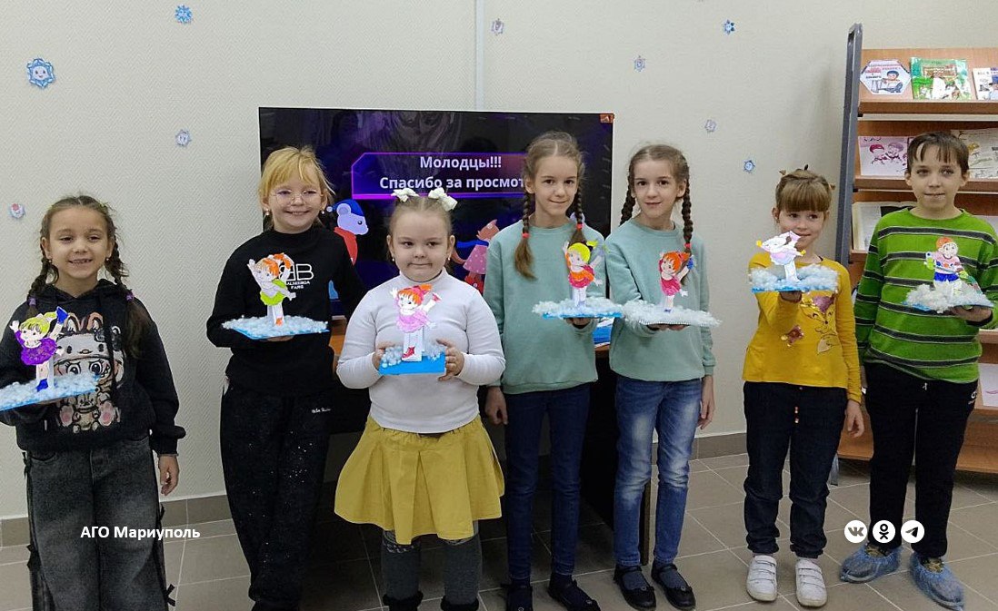 А в детской библиотеке им. Н.Н. Носова юные мариупольцы приняли участие в игровой программе «Зимние виды спорта».