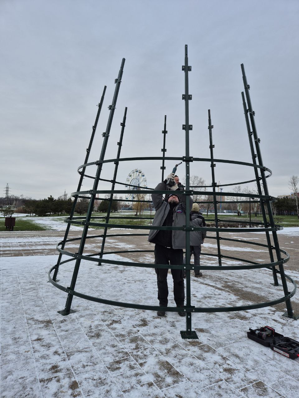 Также специалисты установили каркас праздничной ёлки в парке им. Гурова в Ильичевском районе Мариуполя.