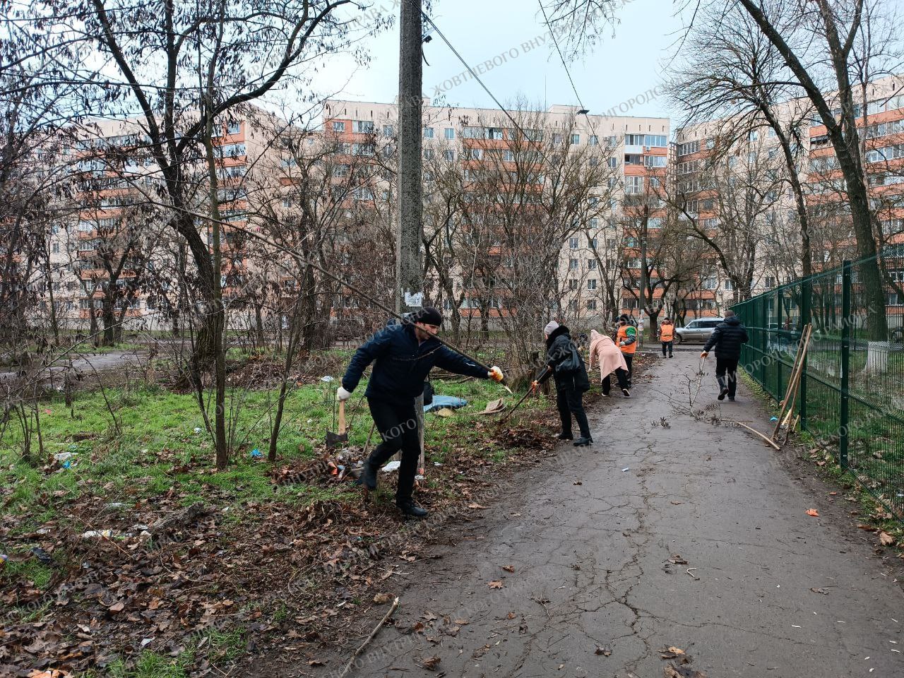 В ходе субботника была проведена уборка бытового мусора, очищены газоны и пешеходные зоны, убраны сухие ветки, выполнена обрезка и подстрижка кустарников, приведены в порядок зелёные насаждения и прилегающая территория.