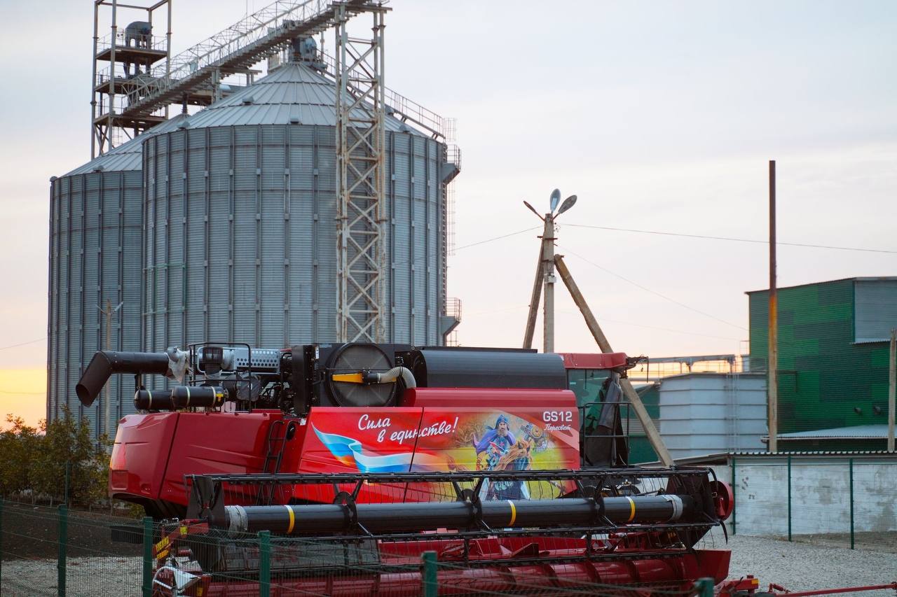 На одном из зерноперерабатывающих предприятий, расположенном в поселке Володарское под Мариуполем, корреспондент «КП Донецк» заметил патриотичный зерноуборочный комбайн GS12 производства «Брянсксельмаш». На технике рисунок с изображением русского богатыря, скачущего на коне по полю, и надпись: «Сила в единстве».