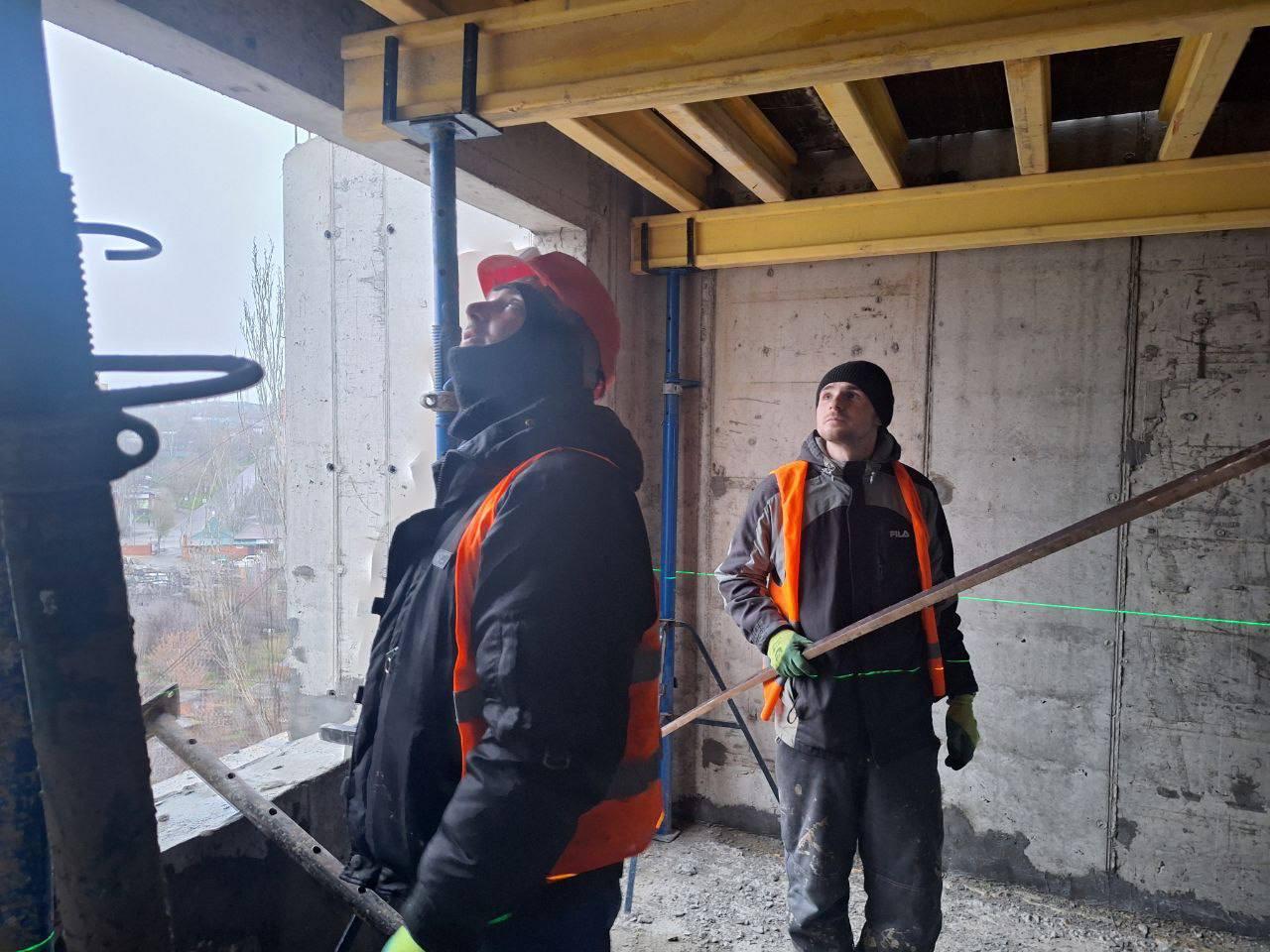 В доме на улице Котляревского специалисты демонтировали аварийные секции и сейчас возводят новые стены и перегородки, ремонтируют инженерные системы.