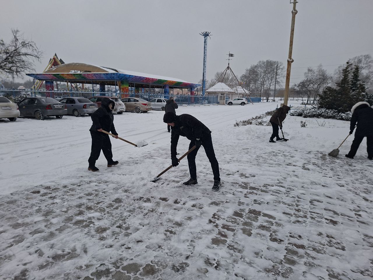 В связи со сложившимися погодными условиями для ликвидации снежных заносов сотрудниками Управы совместно с МУП "Зеленстрой" был организован субботник.