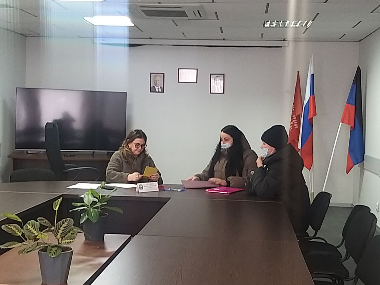 Сегодня в Управе Ильичевского внутригородского района состоялся прием жителей в рамках Проекта "ПРАВОВОЙ КОМПАС", Регионального отделения АЮР в ДНР, реализуемого при поддержке Фонда президентских грантов.