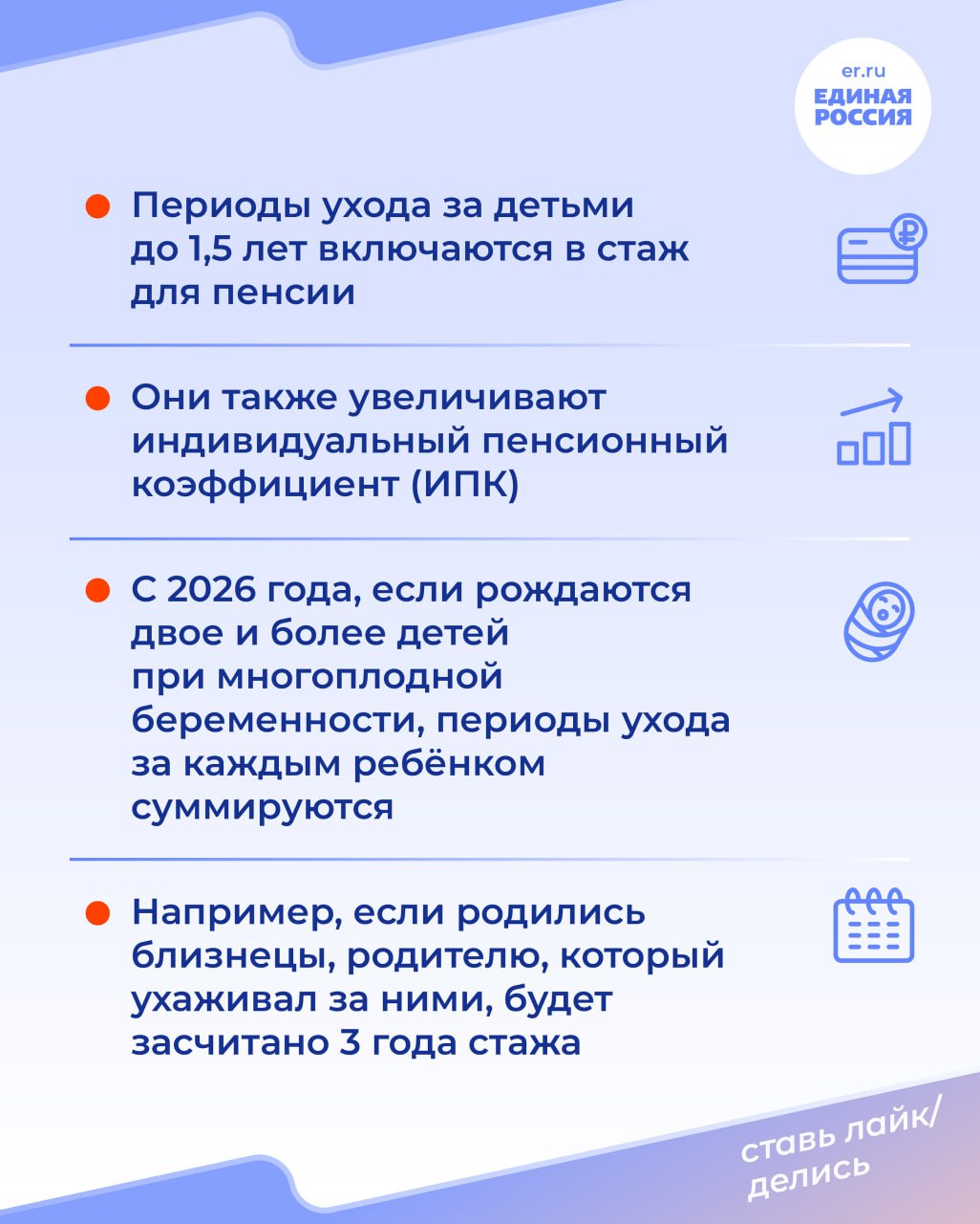 Знаете ли вы, что с 2026 года при рождении сразу двух и более детей стаж за уход до 1,5 лет суммируется?