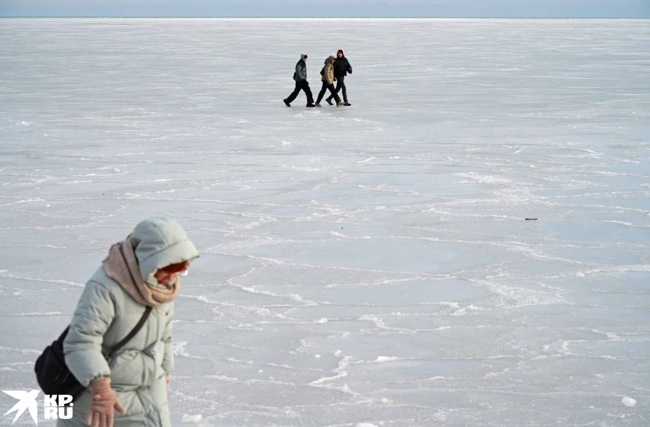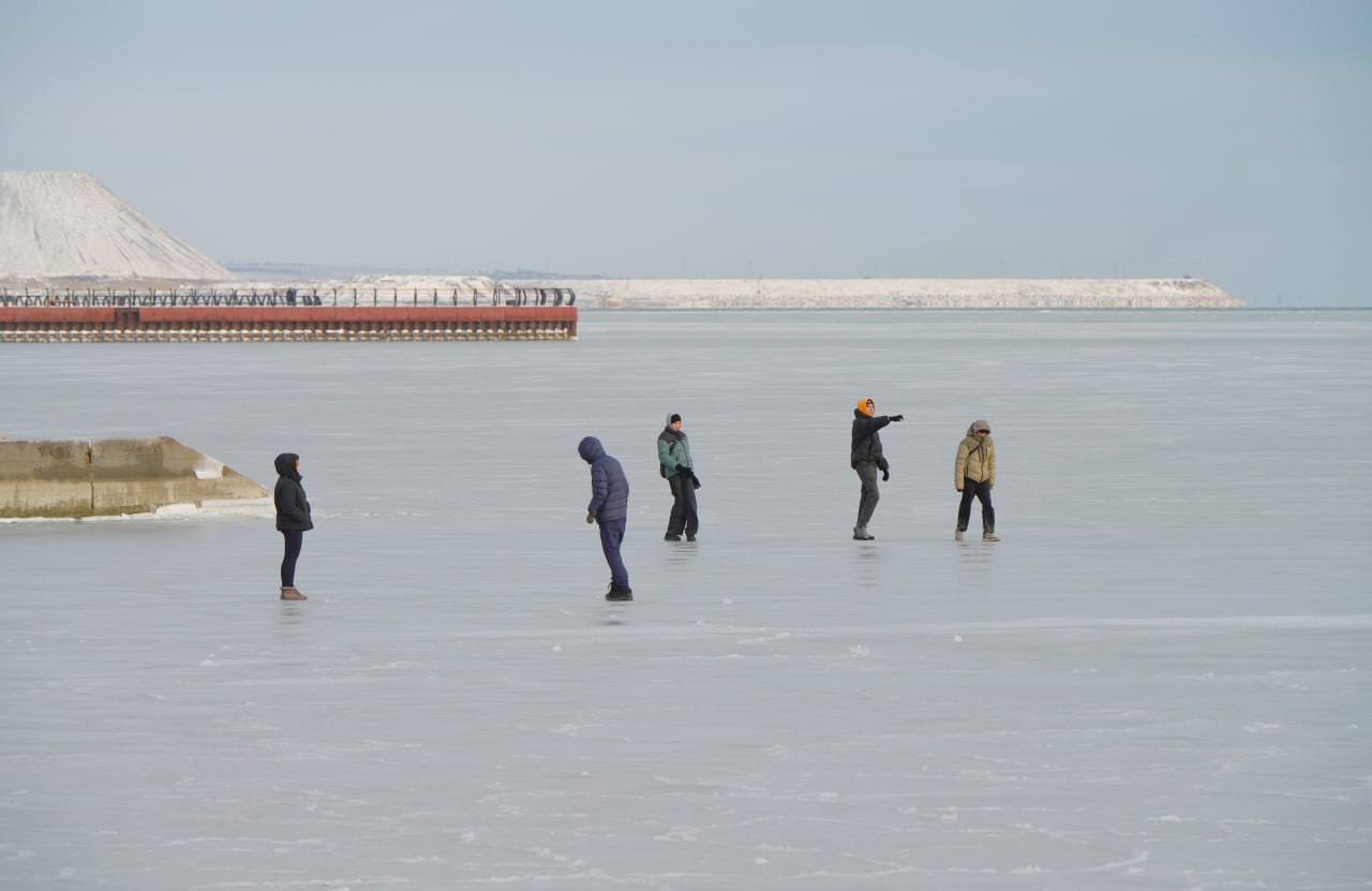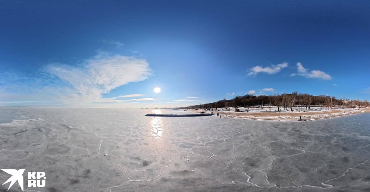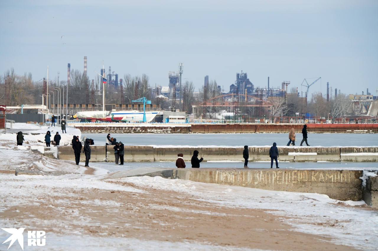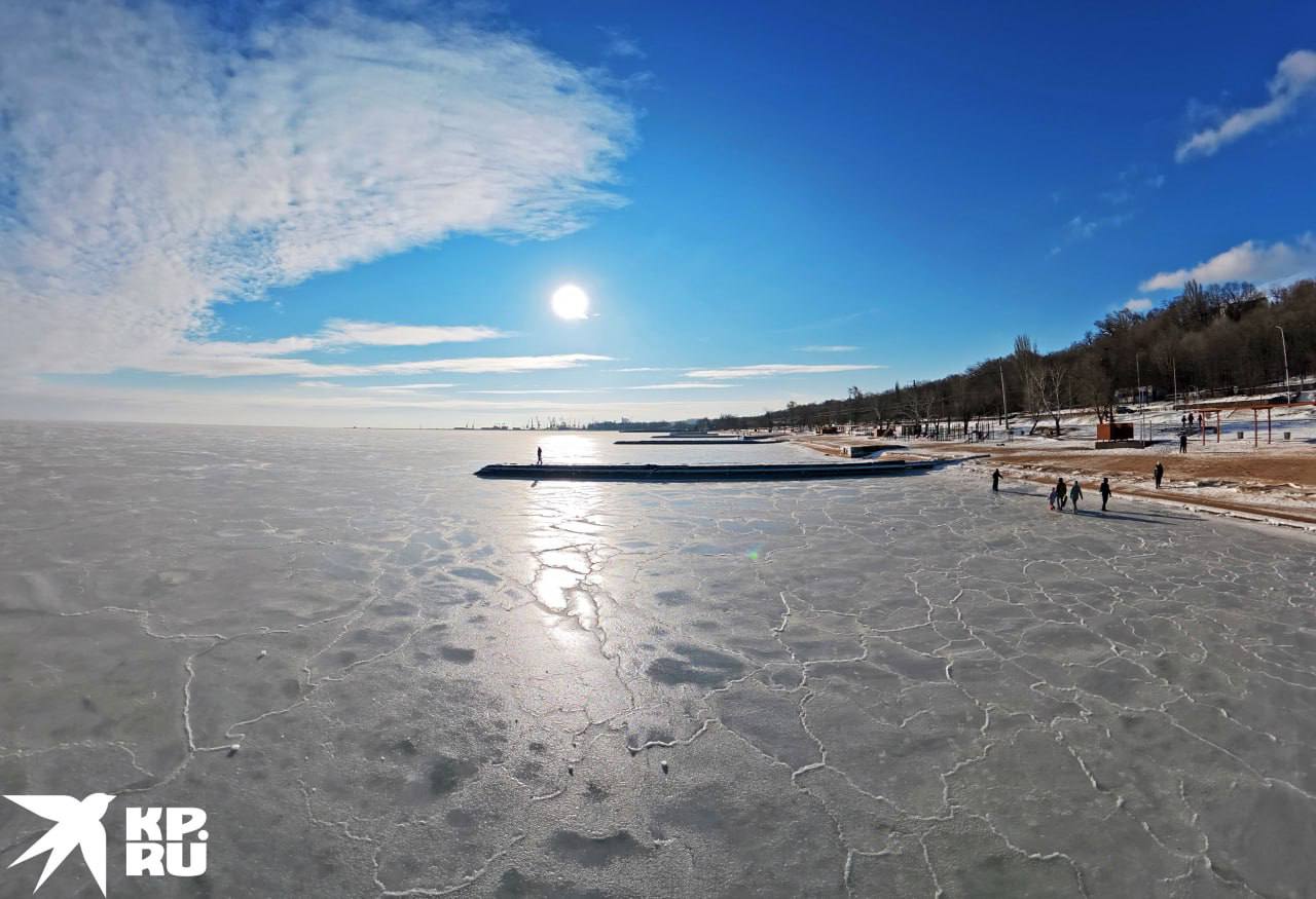 Красота замерзшего Азовского моря. Городской пляж Мариуполя.