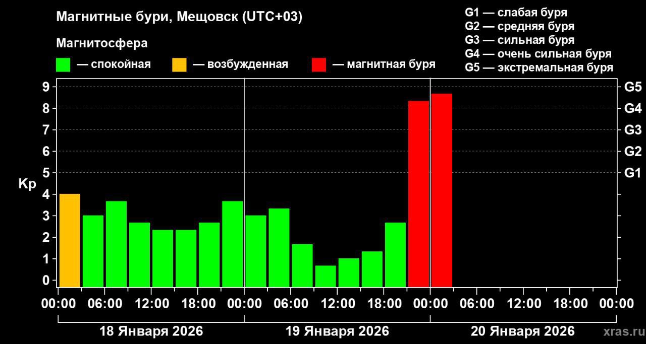 Мощность магнитной бури приблизилась к историческим рекордам, сообщили ТАСС в Институте прикладной геофизики.