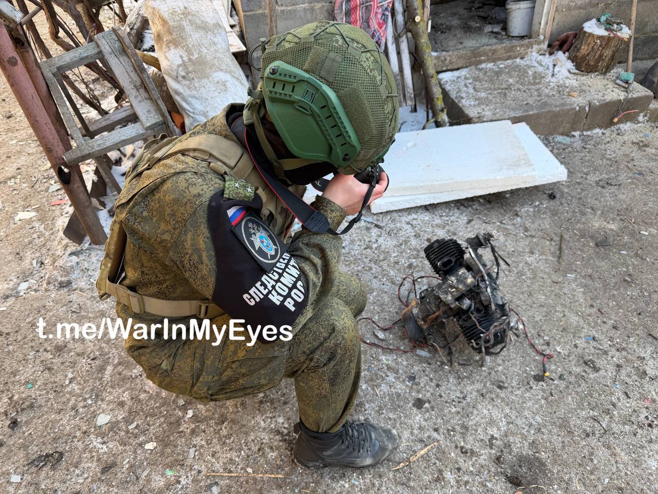 Последствия прилёта ударных дронов самолетного типа, предварительно FP-2, в населённом пункте Сартана, на окраине Мариуполя