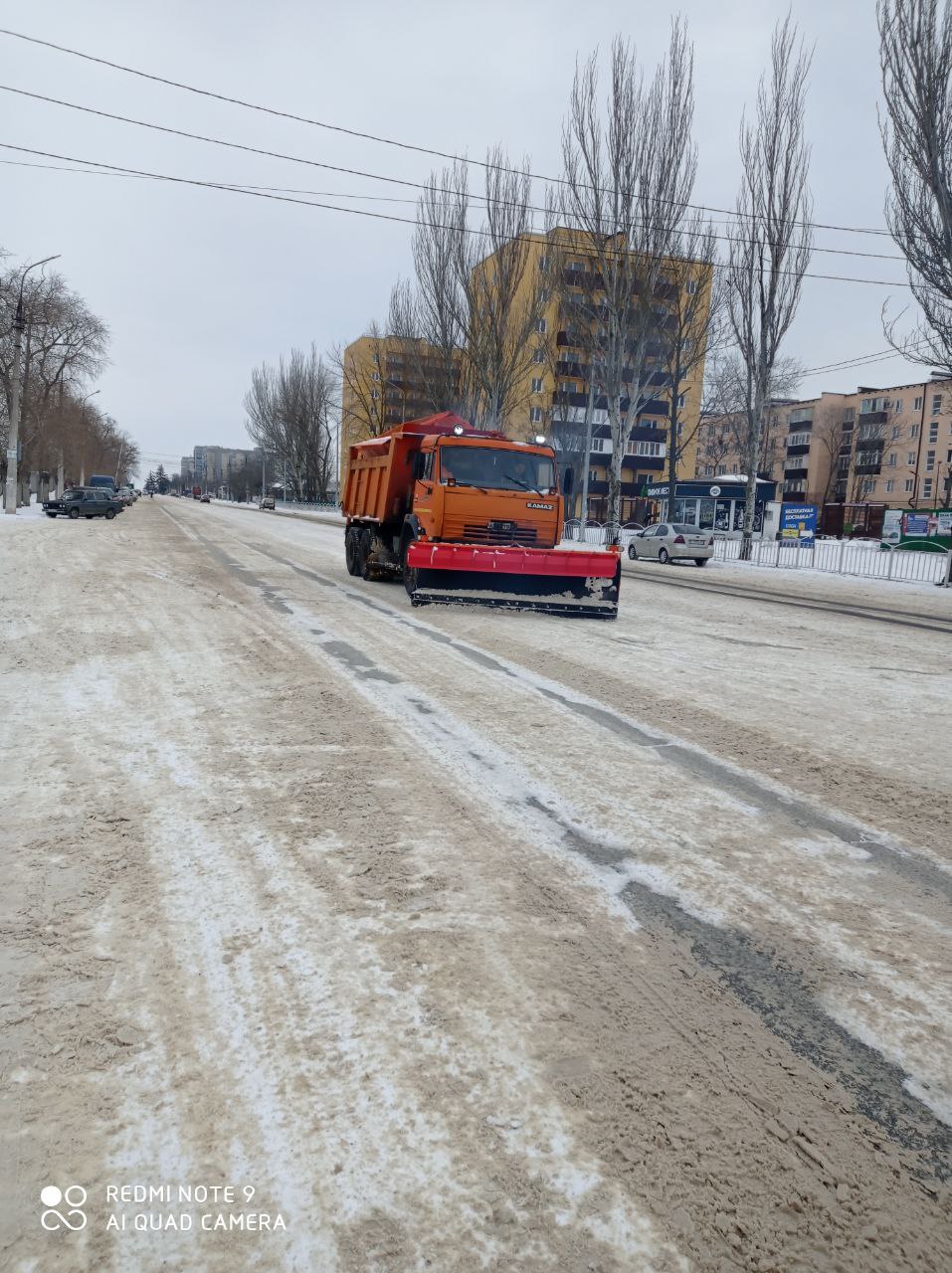 Борьба со снегом в две смены: «МариупольАвтодор» работает в усиленном режиме: техника выходит днём и ночью, чтобы расчистить от снега центральные улицы района.